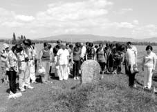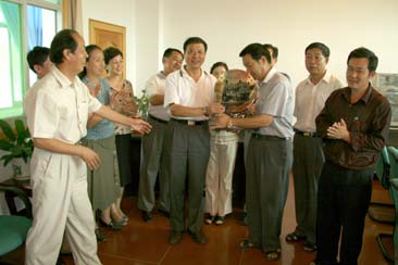 2005 年8 月,团宣传队的部分知青回到农场,带去他们精心制作的纪念铜牌