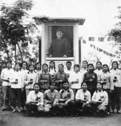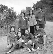 丙寅分场二十四队知青,前排左起:张金月、刘淑兰、郑兰、李静,后排左起:黄平、刘婉华、谢淑红、邢庆芳、林芷宣