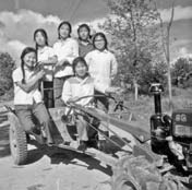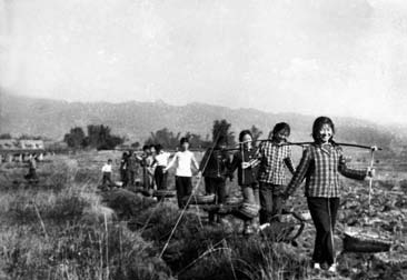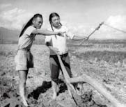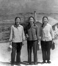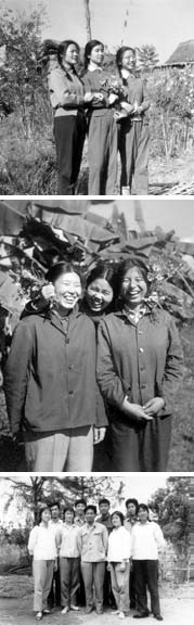 丙寅分场二十队知青,左起:何小平、蒲新月、杨团、常