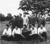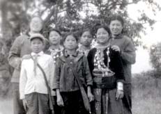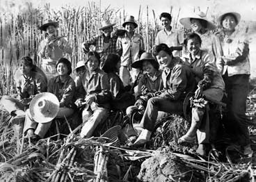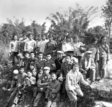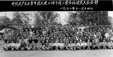 弄巴分场十八队知青,左起:李盛纯、葛顺恩、刘润忠、张宝明弄巴分场十九队知青,前排左起:戚玲、王炳秀、刘静欣、刘家兰,后排左起:桑宝仓(指导员)、朱萍华、郎晓萌、蒋淑华