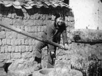 老职工杨兴标教北京知青陆华打当地人放牛用的弹弓