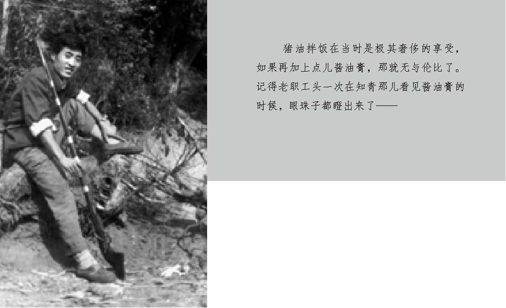 面对这桌丰盛的宴席,不仅二队的知青心有所动,我们每个人都不能不想起,30多年前曾经在老职工家的小伙房里打过的牙祭。我们分享着女主人饲养的鸡、鸭、狗,分享着男主人辛劳一整天才豁来的胡子鱼,从白蚁包里挖出的鲜鸡枞,还有他们家磨的米豆腐、打的糯米粑粑等等。那时候,食堂的大锅菜缺少荤腥,青菜品种也极为单调,真是“萝卜萝半年,白菜白到底”,很多知青都咽不下去。但是同样的这份菜,在老职工家里却还不够几个孩子瓜分的,基本轮不到大人们的嘴里。在这种艰难困苦的情况下,老职工家里偶尔有口好吃的,还总主动招呼知青去共享,真像俗语形容的 “吃个蚂蚱也会给我们留条大腿”。当年我们毕竟太年轻,品出的仅仅是食物的美味,今天才真正意识到它的金贵。
