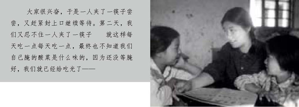 阿团早年是个聪明漂亮的小姑娘,大大的眼睛里透出的那份纯真尤其招人喜爱。但是,由于患小儿麻痹症,阿团的一条腿不会动,小时候只能在地上爬行,知青们见了很是同情,李艺更是抑制不住酸楚的泪水,提议大家帮帮她。男知青李树仁原先就对针灸有研究,为了更好地给阿团治疗,他又反复查医书、定穴位,并一遍一遍地亲身试扎;不少知青觉得自己插不上手,就主动让家里随信寄来艾灸卷。刚开始,孩子怕得要命,哭闹得很凶。为了让她配合,李艺等又是唱歌又是讲童话,还特意带去了连队孩子挺稀罕的水果糖。那阵子,天天晚上大家都围着阿团,忙个不亦乐乎。3 个多月过去了,阿团的腿渐渐有些温热了,知青们甭提多高兴了。