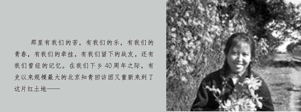 为了探求百思不解的谜底,近20 年间,从首都到边疆的漫漫长路上,总是不乏北京知青的身影。他们有的是个人独行,有的是好友结伴,还有的是一家数口,目的地都是我们度过青春岁月的那片土地——我们的第二故乡。那里有我们的苦,有我们的乐,有我们的青春,有我们的牵挂,有我们留下的战友,还有我们曾经的记忆。在我们下乡40 周年之际,有史以来规模最大的北京知青回访团又重新来到了这片红土地。