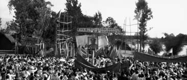 在签到处,提前到达的知青们忙着在赠送给农场的横幅上签名,这是拉线二队的杨克专门为此次回访制作的“1969 年5 月屯垦戍边梦开始——2009 年5月北京知青回陇川”纪念上山下乡40 周年横幅。在北京的时候,那些不能参加回访的知青们都已经在横幅上郑重签名,留下寄语,以表达对边疆红土地的思念、对青春年华的